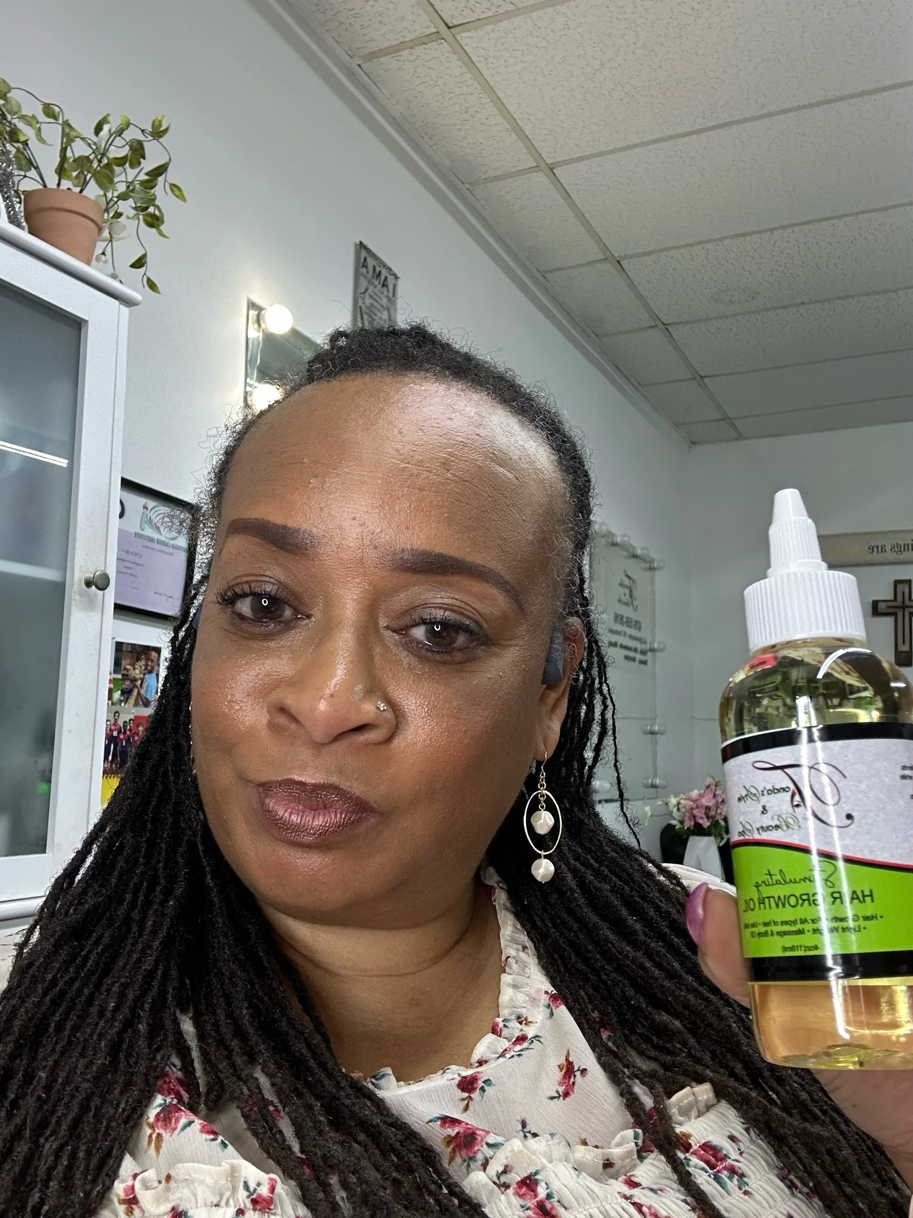 This oil is light weight non-greasy blend of ingredients that promote retention and growth of hair while moisturizing the scalp. Improves blood circulation to the scalp and leaves hair roots strong. Great for all hair types. This is a special formula of essential oils that are used to help reduce inflammation in your scalp and promote healthy hair growth. This is a mixture of peppermint, rosemary, vitamin E, Biotin, Niacin, olive,tea tree and sweet almond oils. It is a 4 ounce bottle and it is very intense pure oil so it should be used once or twice a week. Use this oil in the day time or on your way out for the day. It’s recommended not to use when you going to bed due to the oils being strong and can get onto your pillow and skin.